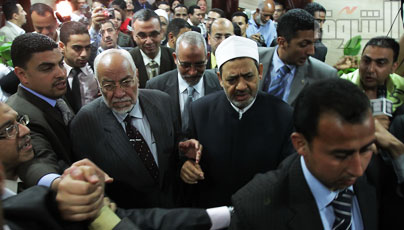 فى سابقة هى الأولى من نوعها إستقبل فضيلة الإمام الأكبر الدكتور أحمد الطيب ، شيخ الأزهر ، المرشد العام لجماعة الإخوان المسلمين ، الدكتور محمد بديع ، والمرشد السابق الدكتور محمد مهدى عاكف ، والدكتور عبد الرحمن البر ، والدكتور سيد عسكر ، حيث أكد الإمام الأكبر أحمد الطيب ، أن اللقاء جاء طيباً للغاية واصفاً الزيارة بالودية .