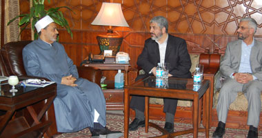 إستقبل فضيلة الإمام الأكبر الدكتور أحمد الطيب شيخ الأزهر، خالد مشعل رئيس المكتب السياسى لحركة حماس ، فى لقاء استمر قرابة النصف ساعة ، تبادلا خلاله التهنئة بالمصالحة الفلسطينية وإنهاء الانقسام ، حيث قدم الإمام الأكبر التهنئة للشعب الفلسطينى وللمسئولين بحركة فتح وحماس .