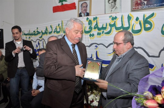 وأوضح المحتفى به أن علاقته بالطلاب كانت علاقة الأب بالأبناء وعلاقته مع الأساتذة علاقة أخوة. ثم قدّم مدير الثانوية للمربي الخطيب وساماً ودرعاً باسم الثانوية.
