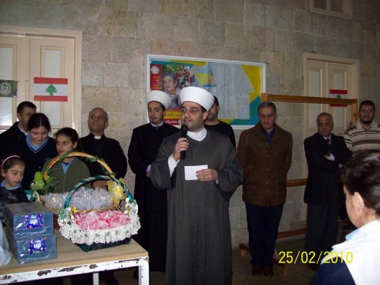 في البدء ألقى رئيس المدرسة الأب رعد كلمةً رحّب فيها بالوفد أمام عشرات الطلاب والحضور، ثم ألقى الشيخ بشاشة كلمة من وحي المناسبة هذا نصها :