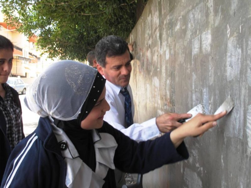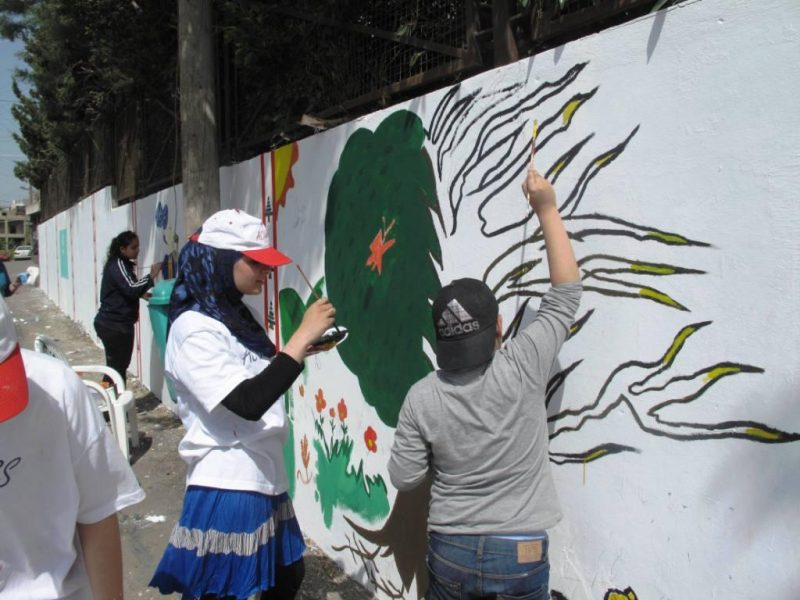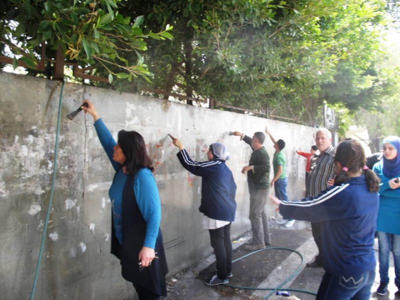 HOPE ” ) Help ” our people evolve ) قام قسم من طلاب الصف الثاني ثانوي في ثانوية برجا الرسمية برسم جدرانيات على سور الثانوية الخارجي , تحت إشراف مباشر من المربية السيدة سعدية رمضان .