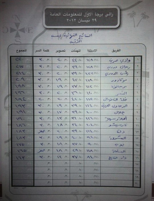 قرابة الثانية ظهراً أعطيت إشارة الانطلاق للبحث عن الأجوبة وحل الألغاز وتنفيذ المهمات , حيث طافت الفرق على حارات برجا العتيقة : حارة الجامع الكبير وحارة العين وحارة البيدر .