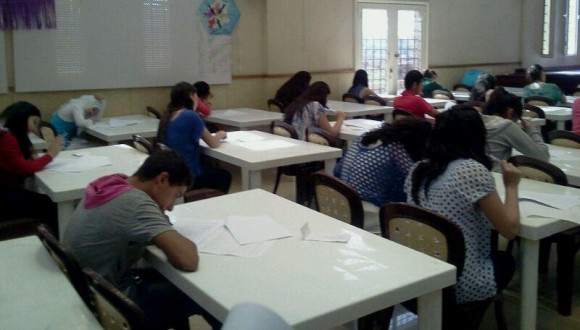 الإمتحان الخطيّ أجري في النادي الثقافي الاجتماعي , وشارك فيه خمسون من الطلبة من أصل مئة وخمسين سجّلوا اشتراكهم , وسط مراقبة شديدة من فريق العمل الذي نظم ودبّر وأنجز كل ترتيبات المسابقة وهم مع حفظ الألقاب :