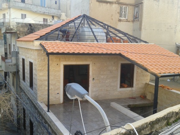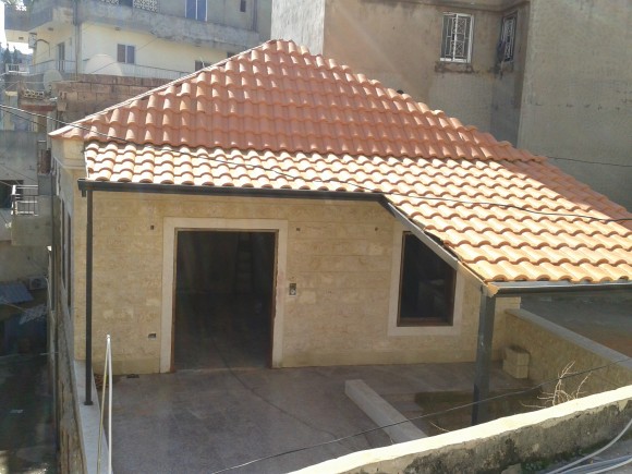 وها هو القرميد الأحمر يُزين سطح المبنى إيذاناً بقرب انتهاء الورشة .