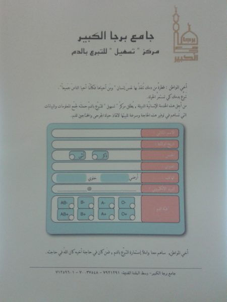 أطلق جامع برجا الكبير , مركز ” تسهيل ” للتبرع بالدّم عبر ورشة لجمع المعلومات والبيانات التي تساهم في توفير هذه الحاجة وسرعة تلبيتها لإنقاذ حياة الجرحى والمحتاجين للدم .