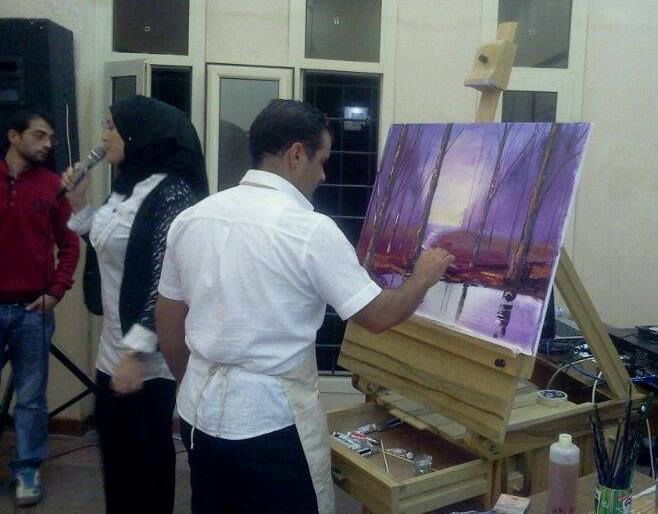 و قد خصصت فقرة للوحات الخطية مع الفنان نادر سيف الدين وللرسم على الحرير مع الفنانة بارعة سراج ، و أخيراً مع الفنان نبيل سعد الذي رسم لوحته الزيتية أمام الحضور و تحت وقع أنغام الموسيقى الكلاسيكية التي أضافت للعرض رونقاً خاصاً و بعداً فنياً متألقاً .