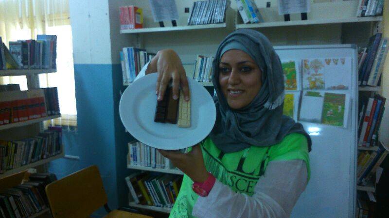 بعد ذلك شرحت حمية الفرق بين أنواع الشوكولا الأشقر و الأسود والأبيض وبينت لهم مكونات كل نوع منهم.