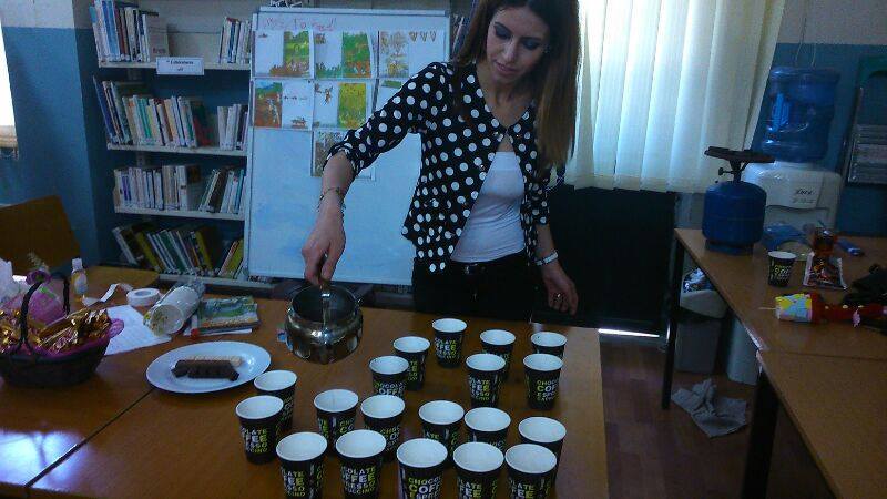 في نهاية النشاط وزعت حمية الشوكولا على الأطفال على سبيل الضيافة ..فكان لقاء لذيذا” بكل ما للكلمة من معنى !