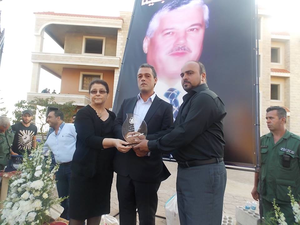 وفي الختام قدم حمية درع البلدية لزوجة الفقيد وابنه، وقدم ترو درع النادي الثقافي، وقدم الشيخ جمال بشاشة درع باسم وقف جامع برجا الكبير. ثم رفعت الستار عن لوحة تذكارية تحمل اسم الراحل الدكتور حسن غصن.