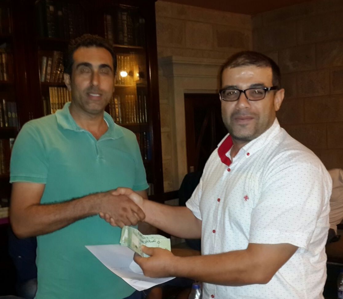 وقد فاز بالجائزة الأولى الدكتور عبد القادر أمين الحاج وقدرها 500 ألف ليرة لبنانية فيما فاز ثانياً الآنسة زينب محمد كحول فنالت 300 ألف ليرة .