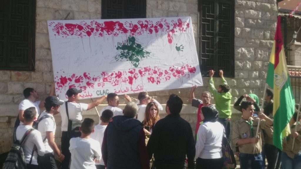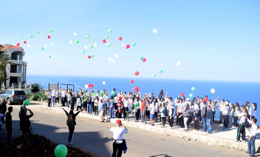 شباب وشابات برجا يمشون للإستقلال ويطوفون بالعلم اللبناني الحارات القديمة