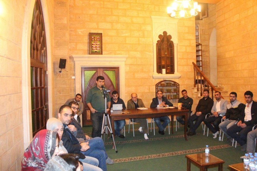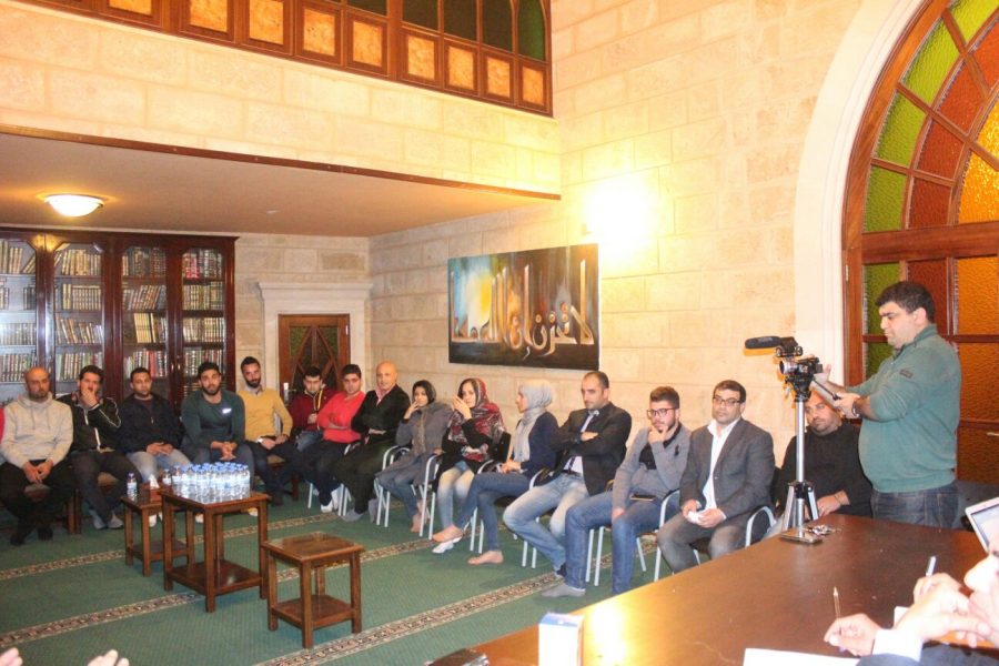 وقد شارك في اللقاء الأول كل مِن : الشيخ جمال بشاشة – الأستاذ علي محمد حمية – الدكتور كمال محمد كمال الخطيب – السيدمحمود الجوزو- الأستاذ باسم ممدوح شبو- الأستاذ محمد إبراهيم شبو- الأستاذ فادي نظير الخطيب- السيد محمد خالد الجنُّون – السيد محمد عبد الرحمن رمضان – السيد أحمد وليد سعد – الأستاذ محي الدين مصطفى المعوش – السيد محمد نايف شبو – الأستاذ نبيل محمد يحيى سعد- الأستاذ ناصر البراج- المهندس علي أحمد حوحو- الدكتور ربيع كمال دمج – السيد يوسف عبد العاقل سعد- الفنان محمد عبد الله السيد – السيد علي سعيد دمج – السيد محمد جرادات – السيد سليم البروش- الأستاذ حمزة عمر حمية – السيد أحمد بشير سعيفان- الأستاذ محمد سليم الخطيب – السيد محمد إبراهيم سعيفان – المهندس ماهر جمال شبو- المهندس جاد سهيل دمج- الدكتور سليم أحمد الحاج- السيد خضر بلال سرور- المهندس مصطفى خليل حوحو – الأستاذ خديجة عمر المعوش- الأستاذة هيلان حسين دمج- السيدة سليمة رمضان الحاج – الدكتور خضر محمد ترو- السيد ممدوح سليم شبو- فؤاد درويش سعد .