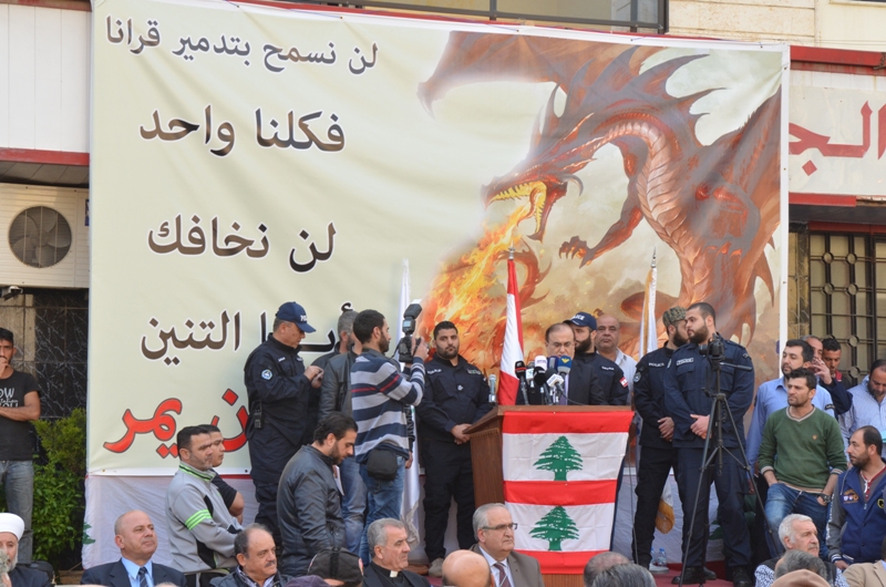 من ناحيته اكد ريئس بليدة بعاصير أمين القعقور “ان ساحل اقليم الخروب يشتهر بوجود الكثير من المسابح والمتجعات السياحية”، مستغربا طرح المنطقة للمطامر”، لافتا الى ان الموقع المقترح تحده من الجهة الشمالية منشآت ومباني جامعة بيروت العربية والجامعة اللبنانية، ومشروع لإنشاء الجامعة الاميركية”، مؤكدا ان الانعكاسات السلبية على هذه المؤسسات في حال انشئ المطمر بالقرب منها”، داعيا الحكومة الرحيل بدل ان تجلب لنا الخطر والمرض لأهلنا”،منددا بكلام وزير الاتصالات بطرس حرب الذي هدد بالاستقالة اذا لم تحل مشكلة النفايات”، داعيا اياه الى نقل النفايات الى منطقة تنورين في البترون لحل المشكلة”، معتبرا ان الاعتصام هو لدق ناقوس الخطر”، مشيرا الى ان التحركات المستقبلية ستكون عواقبها وخيمة.”