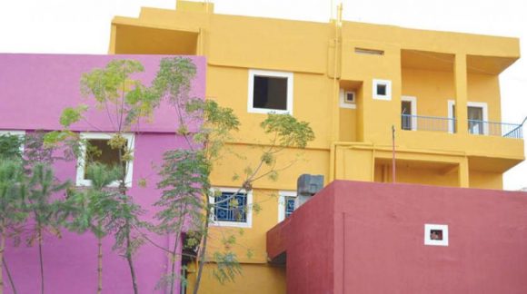 وعن كيفية اختيار الألوان، أجاب: «انطلقنا من الألوان الأساسية الثلاثة: الأحمر والأصفر والأزرق، وتدرجنا منها لتشمل الفوشيا والبرتقالي والأخضر وغيرها، وعمدنا إلى تنسيق الألوان ما بين الأساسية منها والمكملة لها، وتوزيعها بشكل متناغم ومتوازن في آن، وقد استفدنا أيضاً من تباينها بعد أن اعتمدناها في تلوين إكسسوارات هذه البيوت من نوافذ وأبواب من أجل الحفاظ على مشهدية جميلة لا تنفر منها عين ناظرها».
