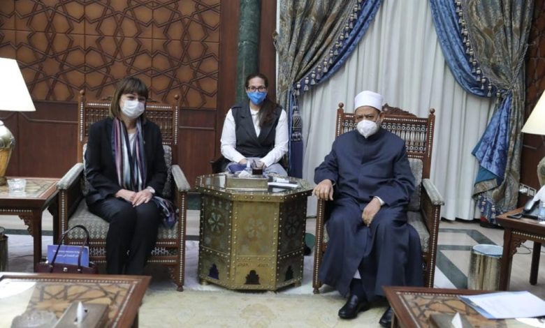 إستقبل فضيلة الإمام الأكبر أ.د/ أحمد الطيب، شيخ الأزهر، الثلاثاء في السابع من كانون الأول 2021 بمقر مشيخة الأزهر، السيدة إلينا بانوفا، المنسقة المقيمة للأمم المتحدة في مصر، لبحث أوجه التعاون بين الأزهر الشريف والأمم المتحدة في مجالات نشر السلام والتعايش ومواجهة العنف والتطرف، والتصدي للكراهية والإسلاموفوبيا.